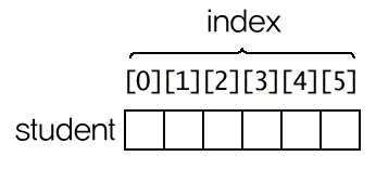 크기 6을 가진 int 형식의 배열 student를 선언하려면 아래와 같이 선언하면 된다.